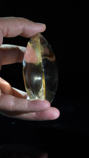 When you hold the crystal in your hand and turn it toward the light,